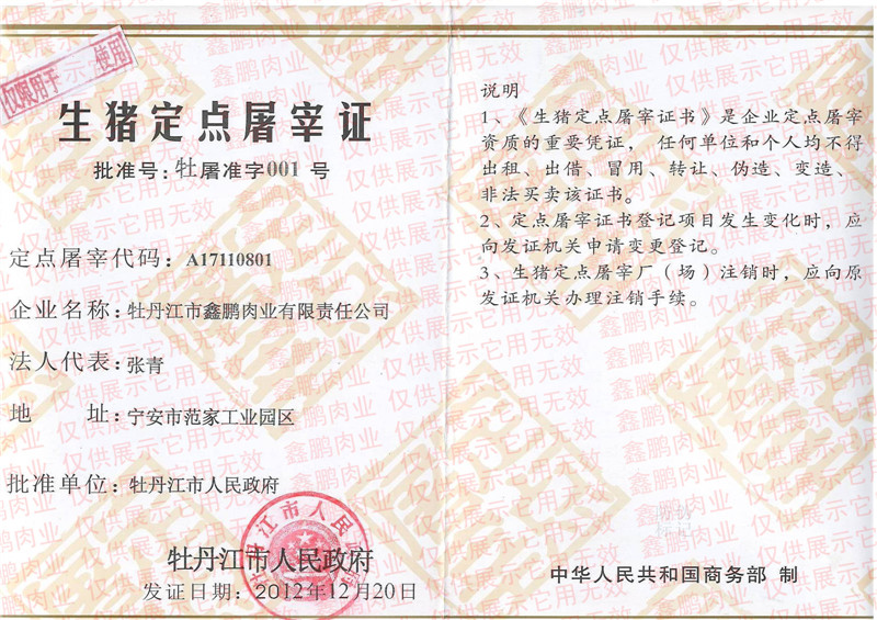 牡丹江市鑫鵬肉業(yè)有限責任公司